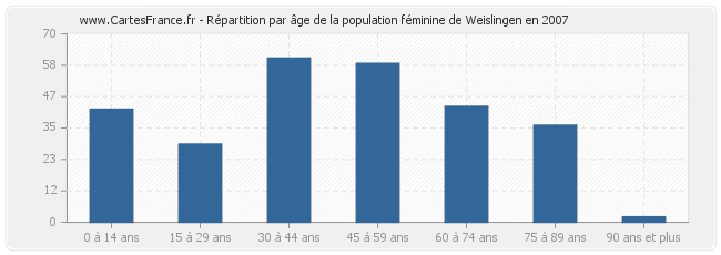 - Femmes de 45 à 59 ans habitant Weislingen : 59
