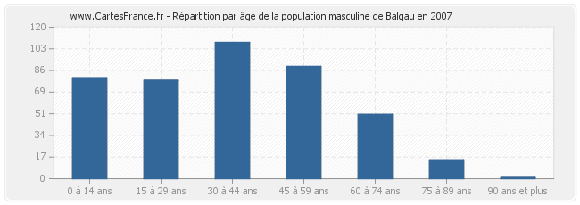 Répartition de la population masculine de Balgau par âge en 2007 :