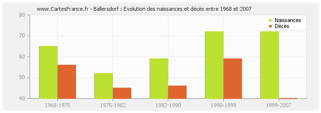 Ballersdorf : évolution des naissances et décès de 1968 à 2007