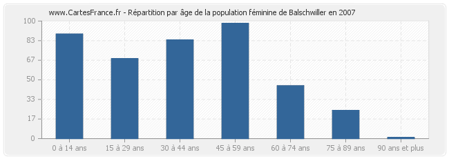 - Femmes de 45 à 59 ans habitant Balschwiller : 98