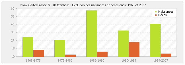 Baltzenheim : évolution des naissances et décès de 1968 à 2007