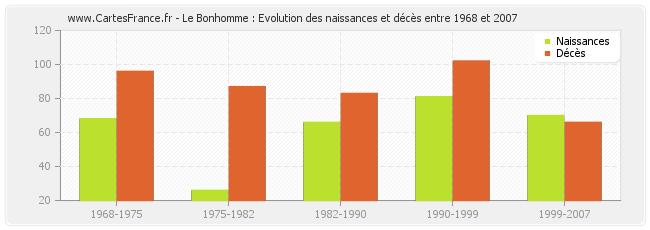 Le Bonhomme : évolution des naissances et décès de 1968 à 2007