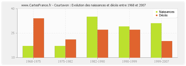 Courtavon : évolution des naissances et décès de 1968 à 2007
