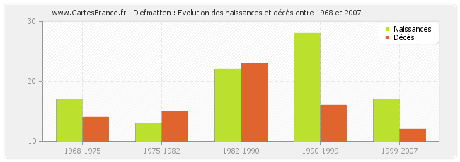 Diefmatten : évolution des naissances et décès de 1968 à 2007