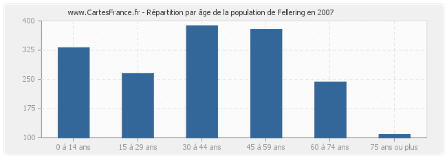 - Population de Fellering de 30 à 44 ans : 387 habitants
