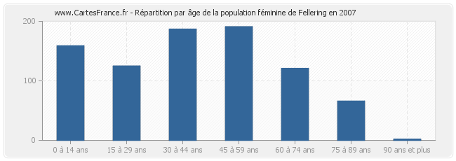 Répartition de la population féminine de Fellering par âge en 2007 :