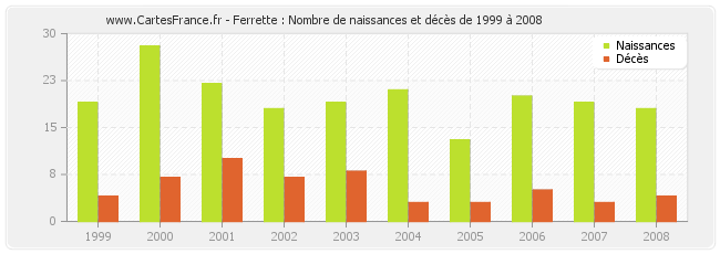 - Ferrette en 2000 : 28 naissances et 7 décès