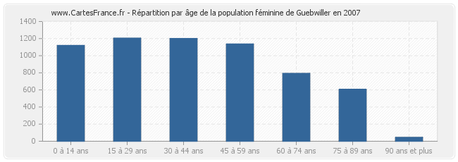 Répartition de la population féminine de Guebwiller par âge en 2007 :