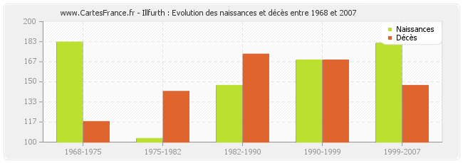 Illfurth : évolution des naissances et décès de 1968 à 2007