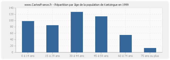 - Population de Kœtzingue de 0 à 14 ans : 98 habitants
