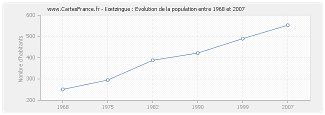 Historique de la population de Kœtzingue de 1968 à 2007 :