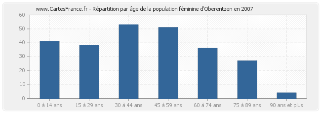 - Femmes de 30 à 44 ans habitant Oberentzen : 53