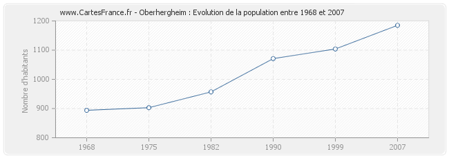 La population d'Oberhergheim était de 1 185 habitants en 2007, 1 104 habitants en 1999, 1 071 habitants en 1990, 957 habitants en 1982, 903 habitants en 1975 et 894 habitants en 1968.