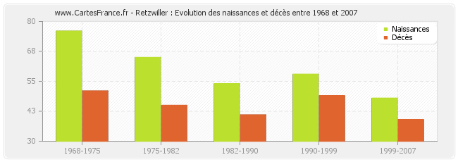 Retzwiller : évolution des naissances et décès de 1968 à 2007