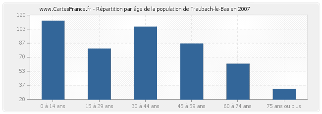 - Population de Traubach-le-Bas de 0 à 14 ans : 113 habitants