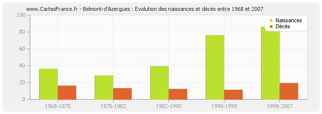 Belmont-d'Azergues : évolution des naissances et décès de 1968 à 2007