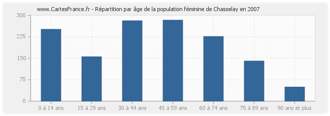 - Femmes de 45 à 59 ans habitant Chasselay : 283