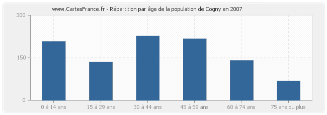 - Population de Cogny de 30 à 44 ans : 226 habitants