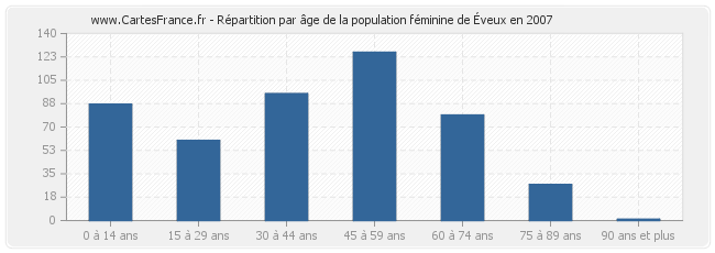 - Femmes de 45 à 59 ans habitant Éveux : 126
