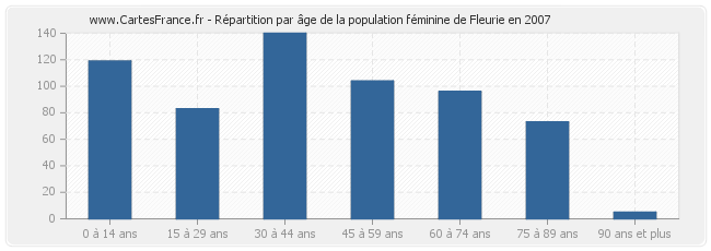 Répartition de la population féminine de Fleurie par âge en 2007 :
