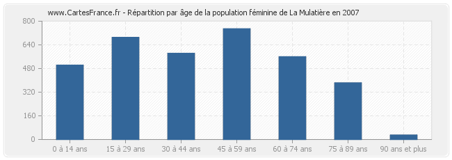 - Femmes de 45 à 59 ans habitant La Mulatière : 749