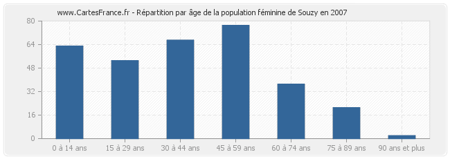 Répartition de la population féminine de Souzy par âge en 2007 :