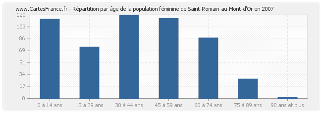 Répartition de la population féminine de Saint-Romain-au-Mont-d'Or par âge en 2007 :