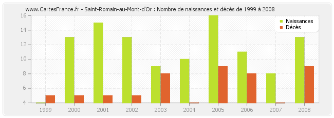 - Saint-Romain-au-Mont-d'Or en 2008 : 13 naissances et 9 décès