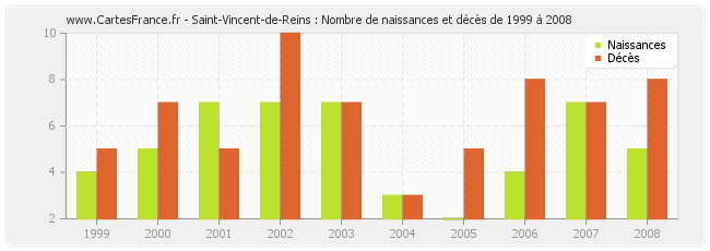 - Saint-Vincent-de-Reins en 2008 : 5 naissances et 8 décès