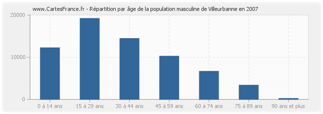 Répartition de la population masculine de Villeurbanne par âge en 2007 :