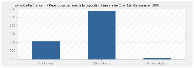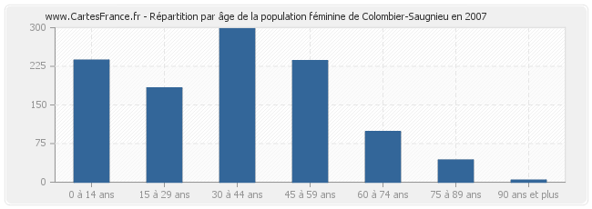 Répartition de la population féminine de Colombier-Saugnieu par âge en 2007 :