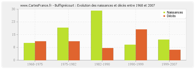 Buffignécourt : évolution des naissances et décès de 1968 à 2007