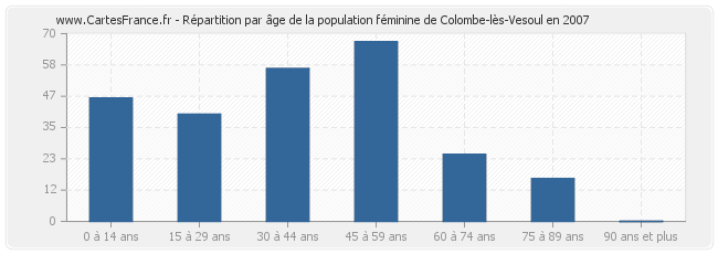 - Femmes de 45 à 59 ans habitant Colombe-lès-Vesoul : 67