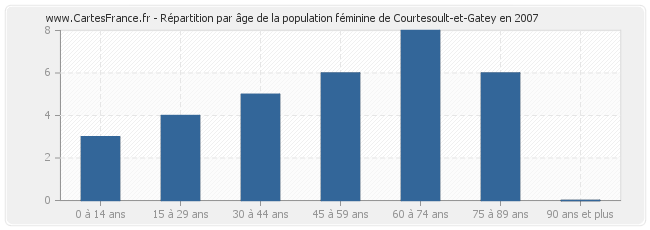 - Femmes de 60 à 74 ans habitant Courtesoult-et-Gatey : 8