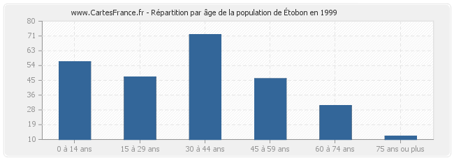 - Population d'Étobon de 30 à 44 ans : 72 habitants