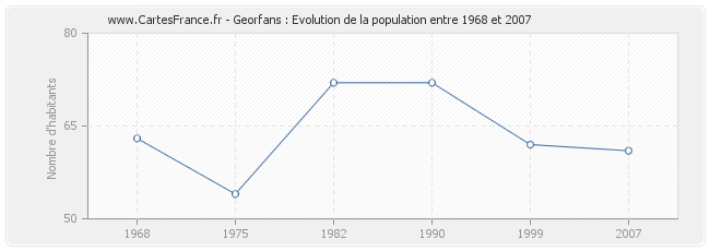 La population de Georfans était de 61 habitants en 2007, 62 habitants en 1999, 72 habitants en 1990, 72 habitants en 1982, 54 habitants en 1975 et 63 habitants en 1968.