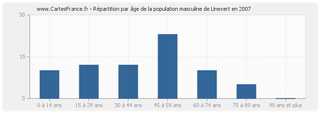 Répartition de la population masculine de Linexert par âge en 2007 :