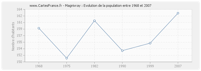 La population de Magnivray était de 163 habitants en 2007, 155 habitants en 1999, 153 habitants en 1990, 161 habitants en 1982, 151 habitants en 1975 et 159 habitants en 1968.
