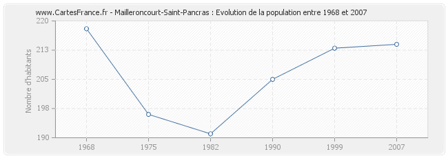 La population de Mailleroncourt-Saint-Pancras était de 214 habitants en 2007, 213 habitants en 1999, 205 habitants en 1990, 191 habitants en 1982, 196 habitants en 1975 et 218 habitants en 1968.