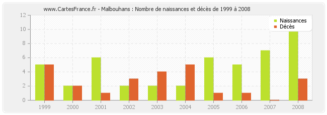 - Malbouhans en 2008 : 11 naissances et 3 décès