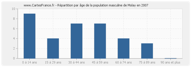 Répartition de la population masculine de Molay par âge en 2007 :