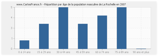 Répartition de la population masculine de La Rochelle par âge en 2007 :
