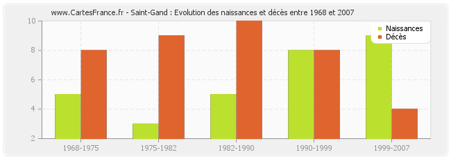 Saint-Gand : évolution des naissances et décès de 1968 à 2007