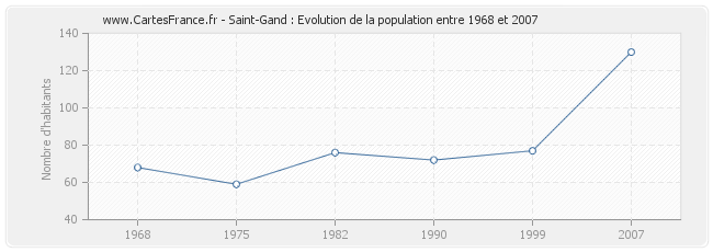 La population de Saint-Gand était de 130 habitants en 2007, 77 habitants en 1999, 72 habitants en 1990, 76 habitants en 1982, 59 habitants en 1975 et 68 habitants en 1968.