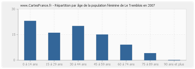 - Femmes de 0 à 14 ans habitant Le Tremblois : 23