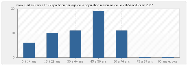 Répartition de la population masculine de Le Val-Saint-Éloi par âge en 2007 :