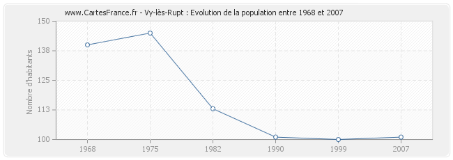 La population de Vy-lès-Rupt était de 101 habitants en 2007, 100 habitants en 1999, 101 habitants en 1990, 113 habitants en 1982, 145 habitants en 1975 et 140 habitants en 1968.