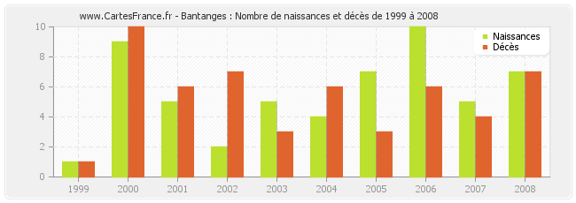 - Bantanges en 2008 : 7 naissances et 7 décès
