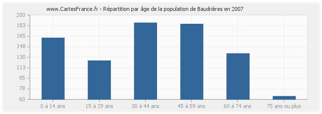 - Population de Baudrières de 45 à 59 ans : 163 habitants