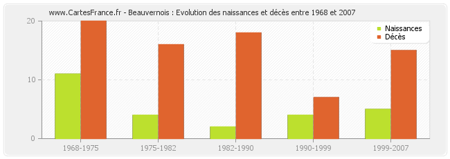 Beauvernois : évolution des naissances et décès de 1968 à 2007